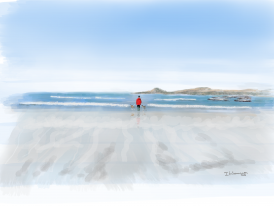 A few years ago I realised that there's a process for everything - including art. So I dabble in my spare time. This is a friend of mine on a beach in Ireland with her two Boxer dogs.